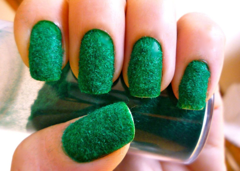 Классический флок обычно настолько мелкий, что создает мягкое велюровое покрытие на ногтях, но некоторые модницы идут еще дальше и создают креативный маникюр с более длинными ворсинками. Выглядит такой дизайн весьма необычно, но, ни этого ли эффекта мы хотим добиться.