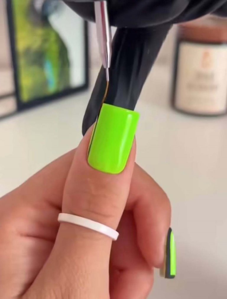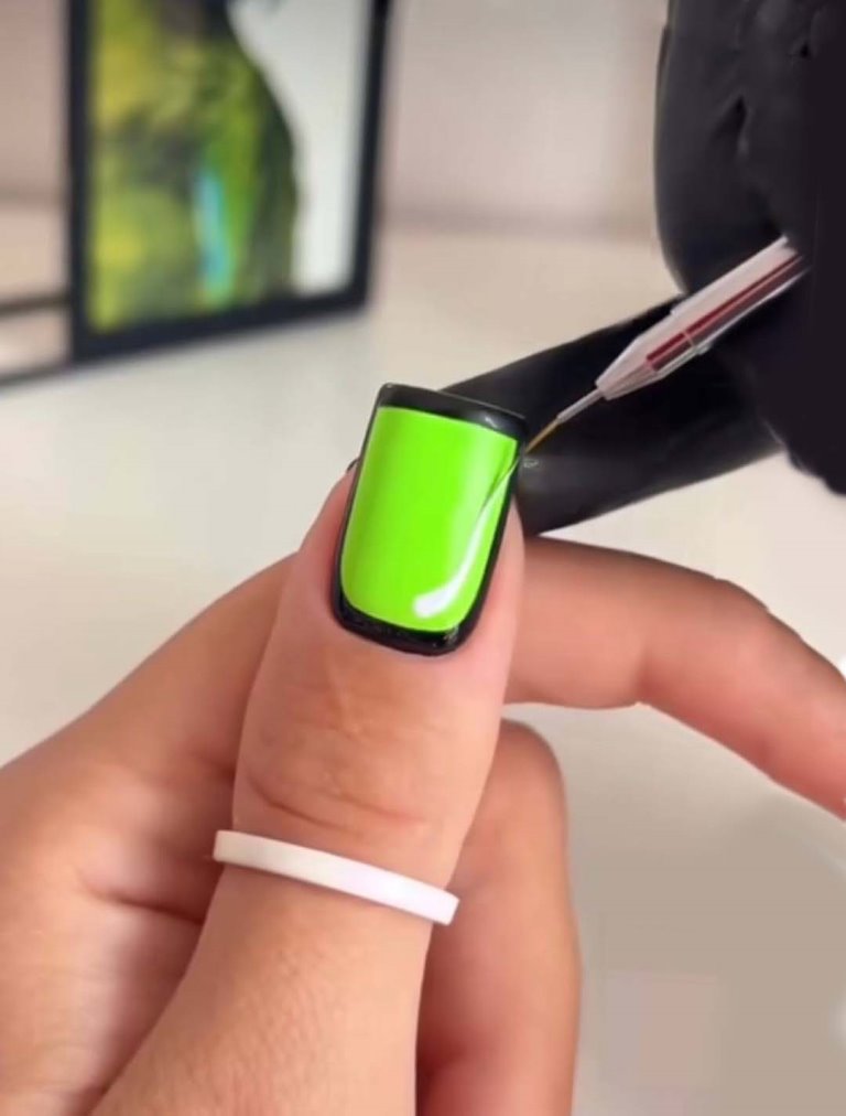 - Отступив немного от левого края ногтя, прорисовывается черная горизонтальная линия. После чего, от линии вырисовывается еще одна вертикальная линия.
