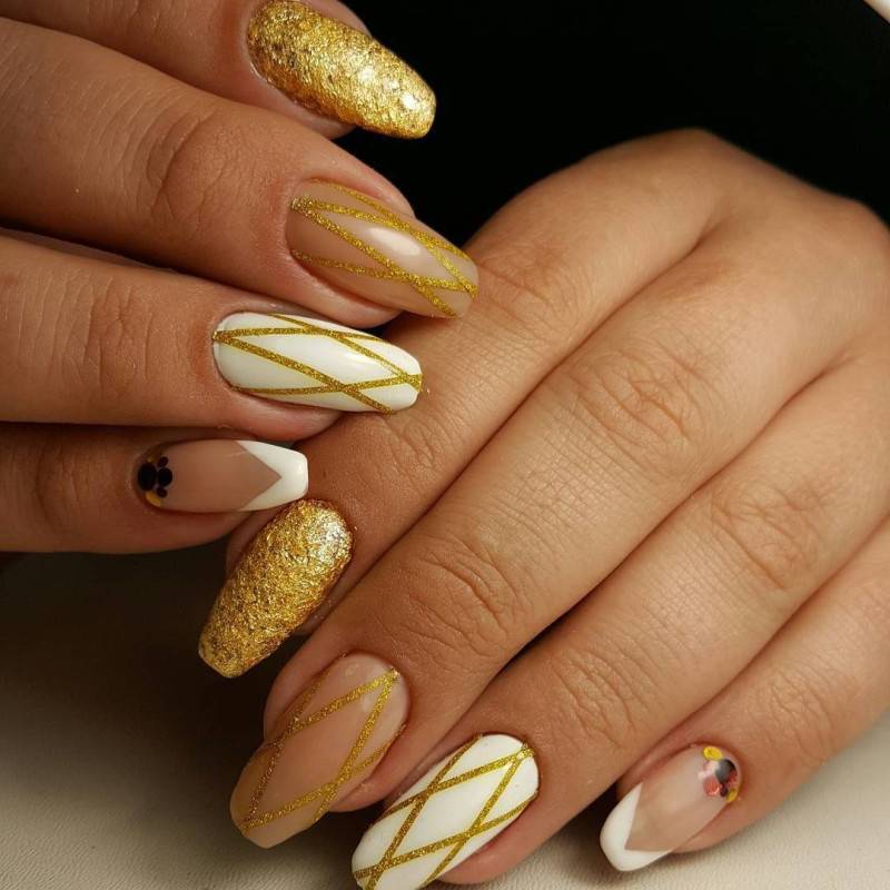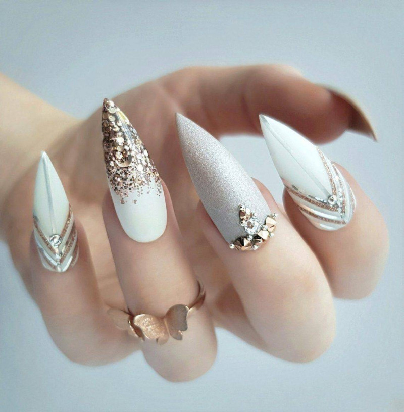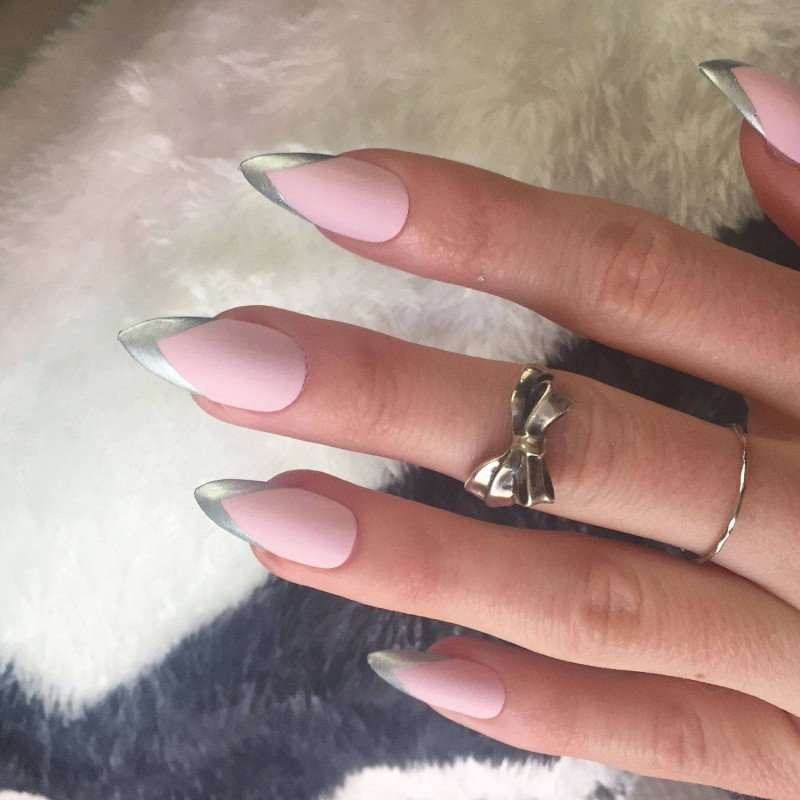 Лучше всего такой дизайн смотрится в серебряных и золотых оттенках. Это добавляет некоторые благородные нотки в дизайн. Такой френч смотрится стильно и роскошно.