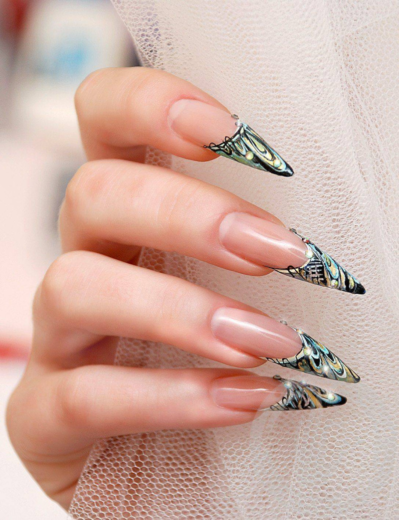#8 Френч на длинных ногтях с дизайном