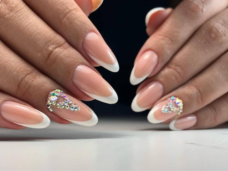 Нередко белый френч дополняют мелкими стразами на безымянном пальце, что добавляет дизайну нежности и женственности.