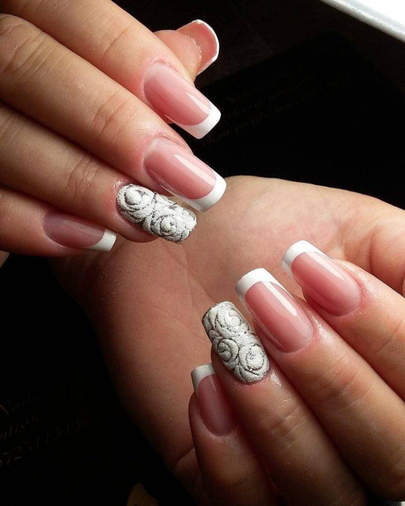 В качестве дизайна можно выбрать рисунки или лепнину. Лунный французский nail art чаще всего используются невестами. Такой нейл дизайн занимает очень много времени и требует многоэтапной работы профессионалов.