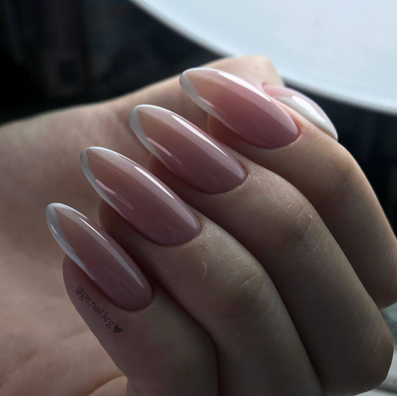 Нежный бежевый: Этот оттенок подходит для создания мягкого и нежного френч-маникюра. Он дополняет естественный цвет ногтей, делает их более аккуратными и придает руках изысканный вид.