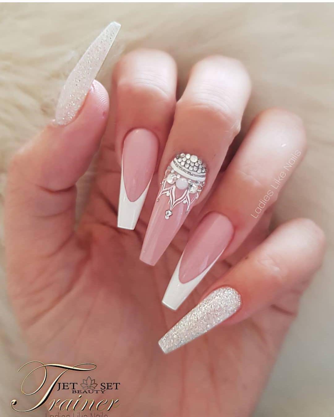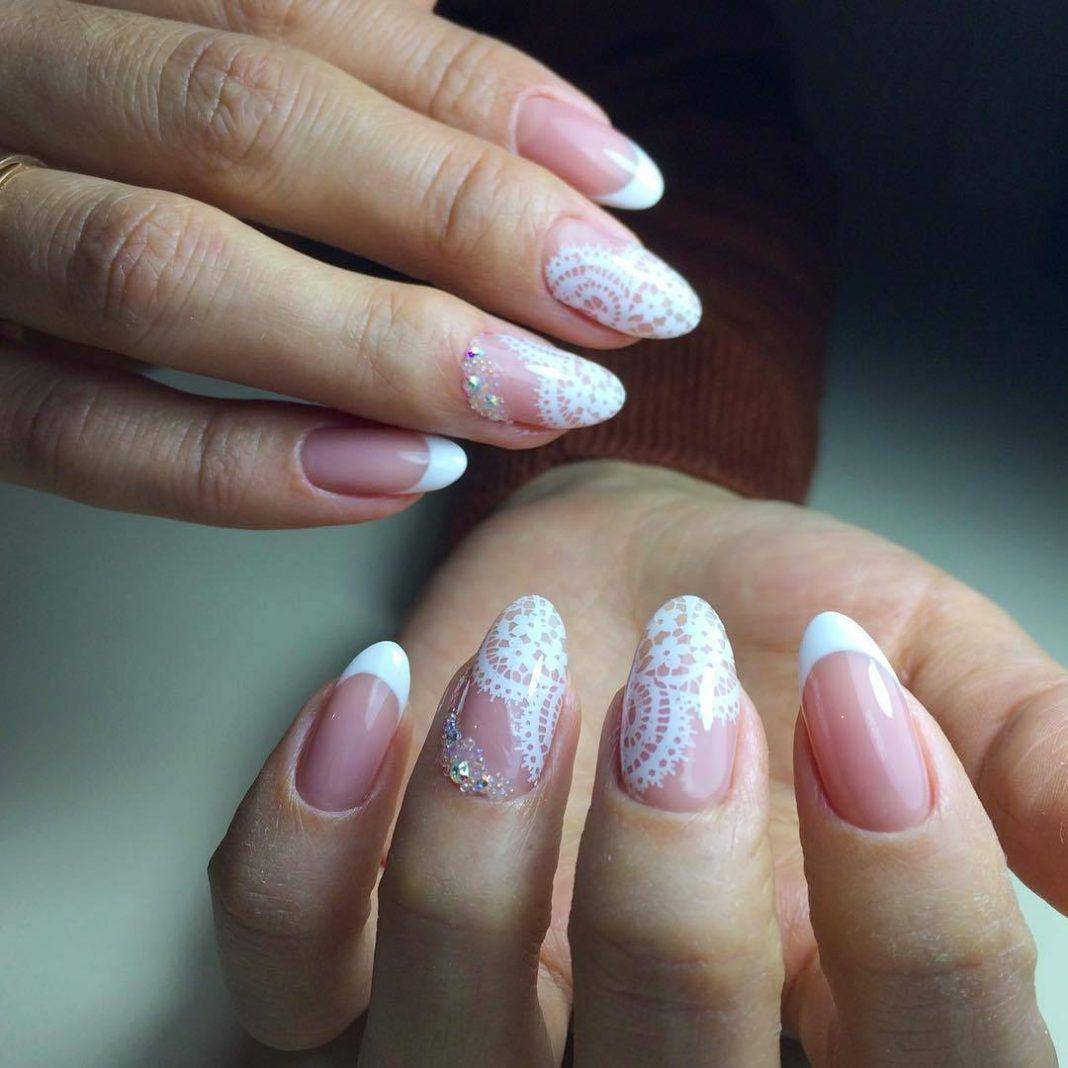 В качестве дизайна можно выбрать рисунки или лепнину. Лунный французский nail art чаще всего используются невестами. Такой нейл дизайн занимает очень много времени и требует многоэтапной работы профессионалов.