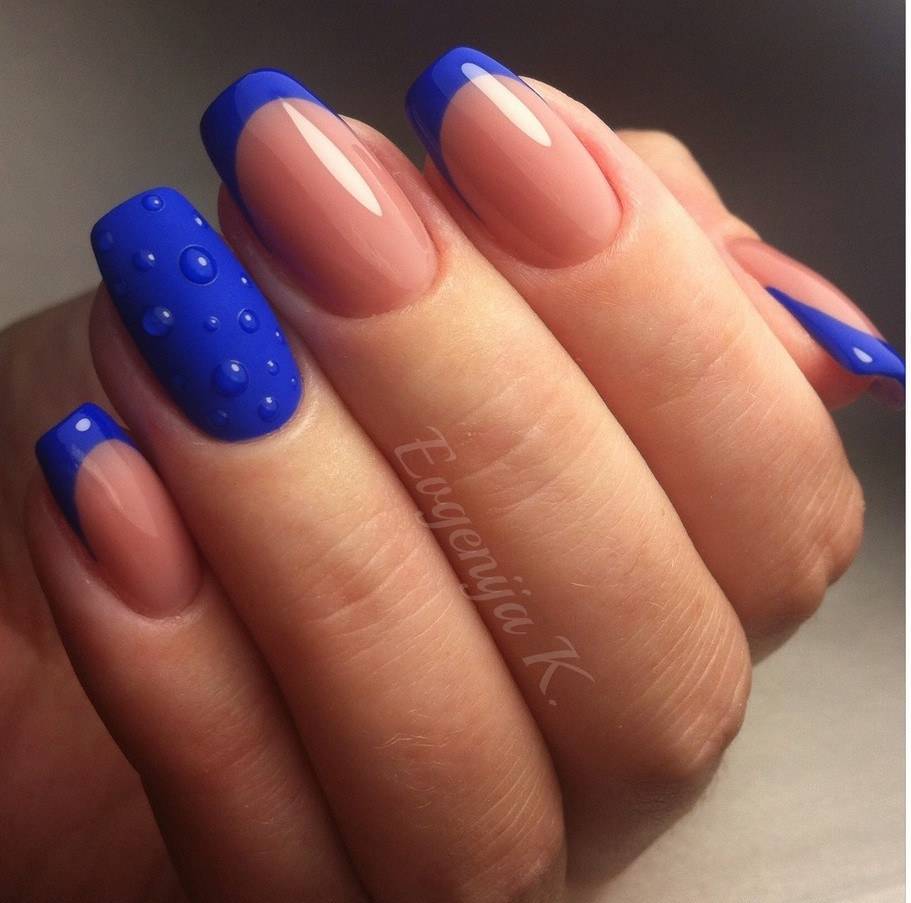 Они различаются по форме, исполнению и цветам. Существует несколько видов: классический, ассиметричный, с разными линиями улыбки. Всё зависит от формы ногтей, техники нанесения, дополнительных украшений, стилистики.