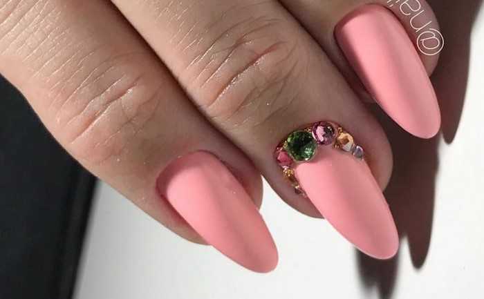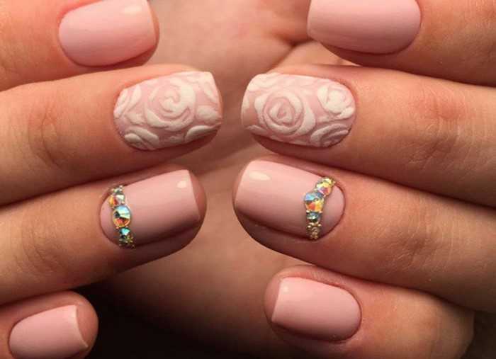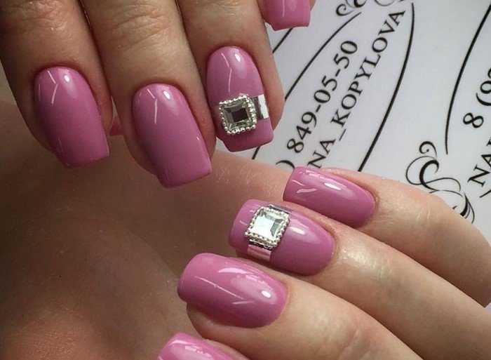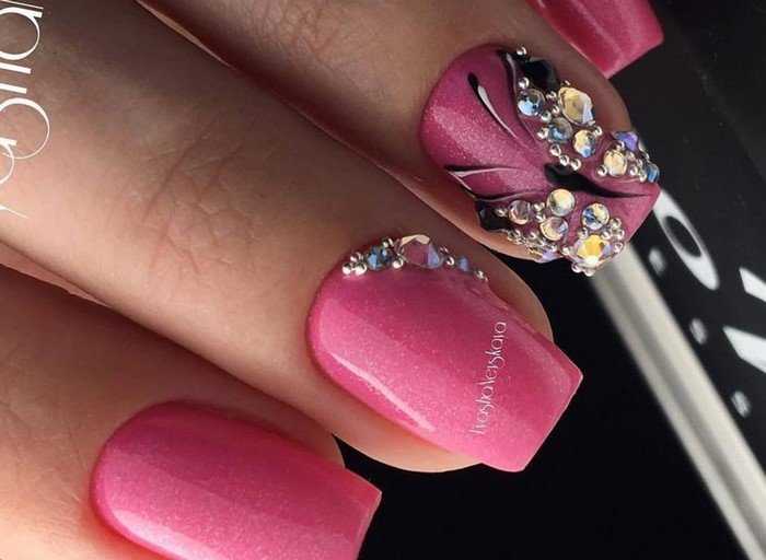 Розовый маникюр со стразами