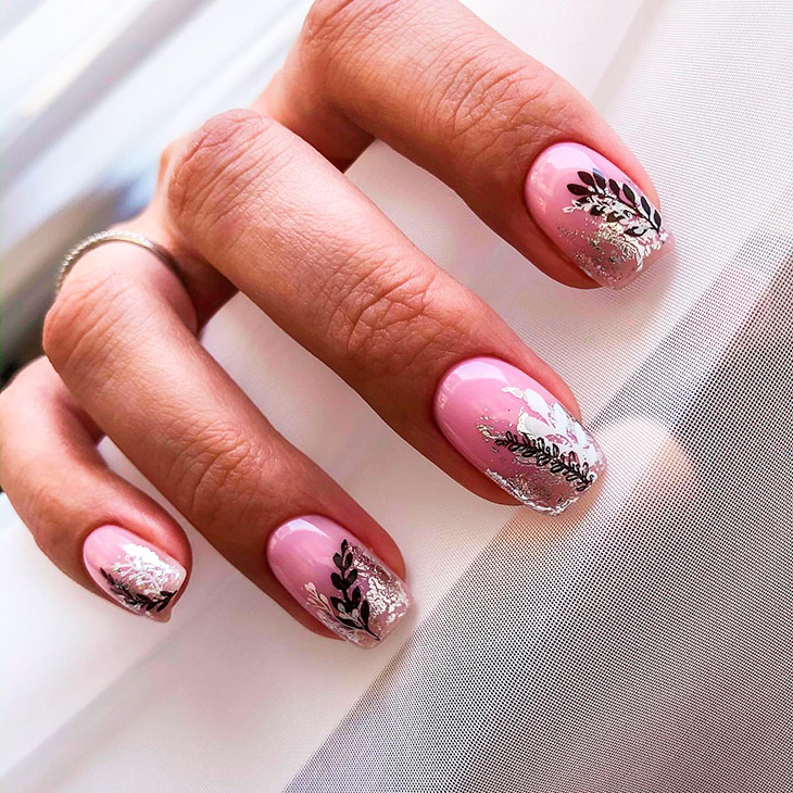 Ниже мы подобрали несколько идей маникюра в розовых тонах с вкраплением черного. Посмотри, насколько эффектно смотрится френч — мы бы не догадались так интересно скомбинировать эти два цвета. Чтобы усилить глубину черного, в некоторых дизайнах можно использовать черный песок или добавить немного серебряного глиттера.
