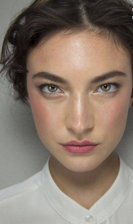 Оптимальная форма бровей – арочная, цвет – натуральный. Они должны быть ухожены и хорошо прокрашены. В тренде еще одно решение – обесцвеченные брови. Макияж получается максимально естественным и непринуждённым. Еще один тренд 2020 года – легкий румянец на безупречно чистой коже.