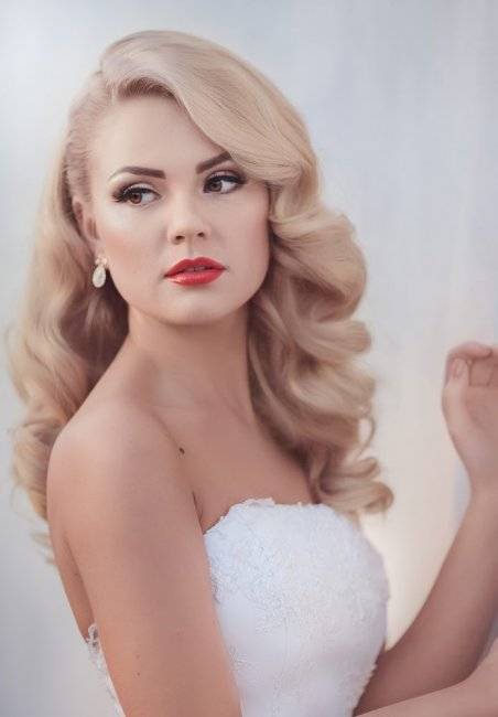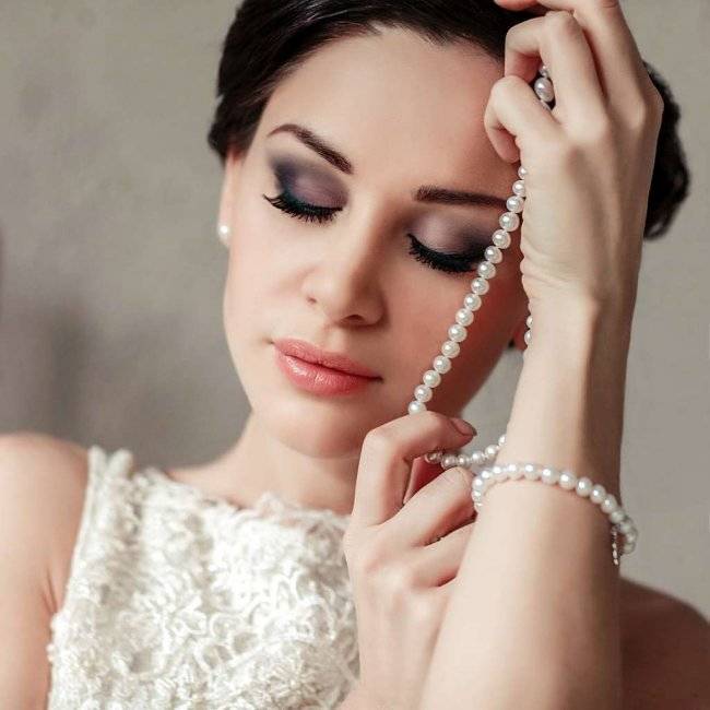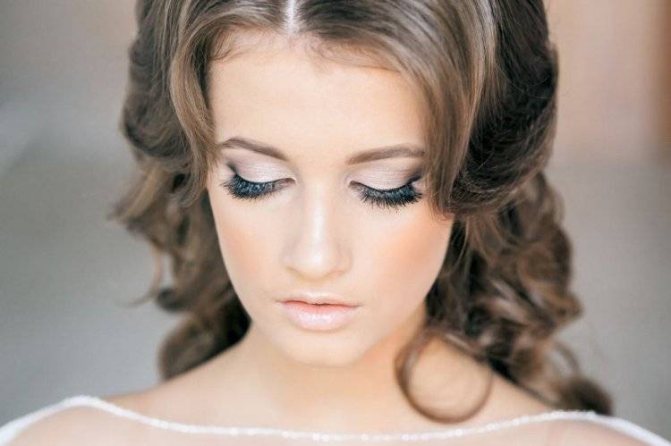 Голубым и серым глазам не требуется слишком много макияжа. Достаточно лишь подчеркнуть достоинства невесты, сделать взгляд выразительнее. Слишком длинные, объемные ресницы и насыщенный оттенок помады сделают образ вульгарным.