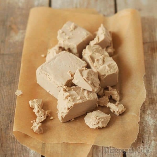 - треть 150 граммовой пачки свежих или сырых дрожжей;