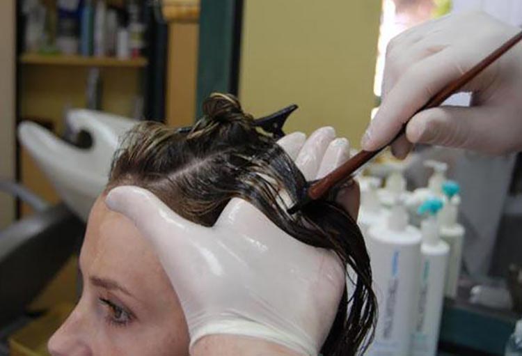 - Пряди надо разделить на секции, чтобы наносить средство непосредственно на кожу головы, а не на локоны.