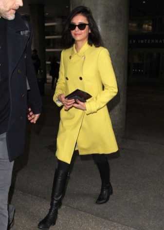 Актриса демонстрирует прекрасное умение гармонично сочетать в своем гардеробе как пальто классических оттенков, так и смелые яркие вариации.