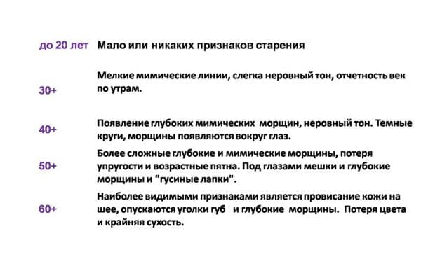Возраст. Со временем кожный покров изменяет структуру, внешнее состояние и состав. Поэтому в разном возрасте лицо нуждается в индивидуальном уходе и определенных витаминах, питательных элементах.