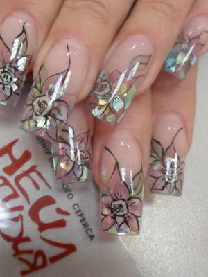 Слайдер дизайн представляет собой технику, в которой используются специальные переводные наклейки. Изображения нанесены на пленку, которая отслаивается посредством замачивания. Пленка, благодаря своей пластичности, отлично повторяет форму ногтевой пластины.