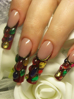 - Нарощенные ногти покрыть лаком и добавить элементы дизайна (рисунки, наклейки, стразы).