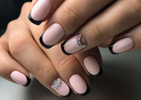 Сочетание лунного маникюра, френча и страз
