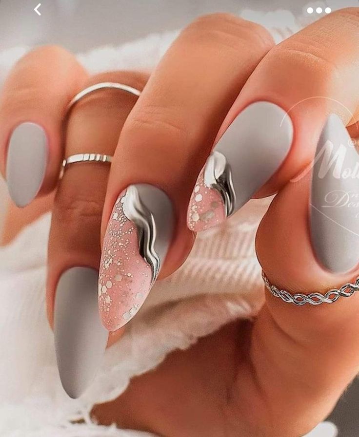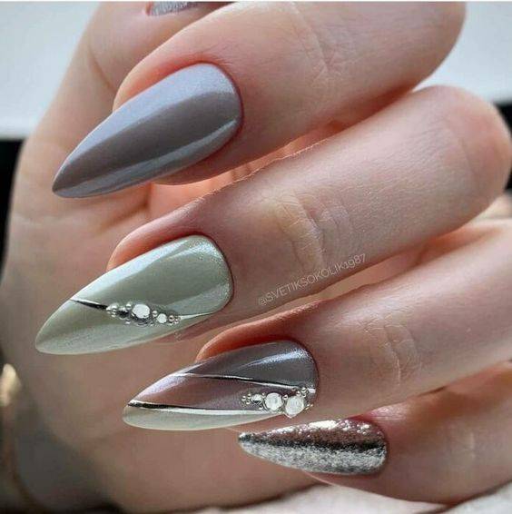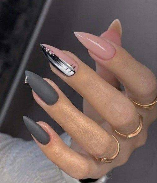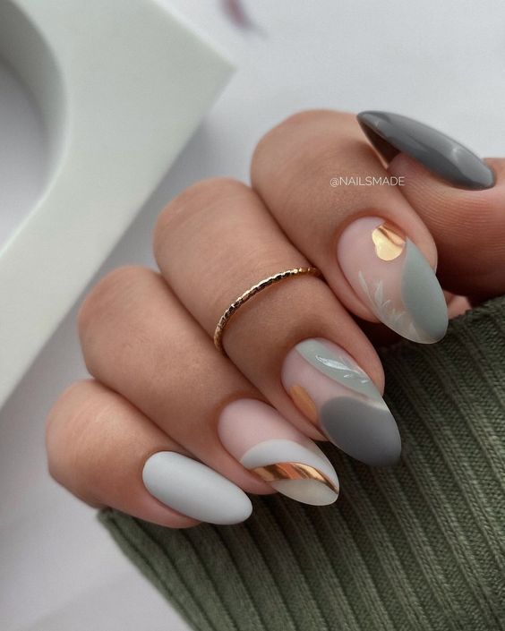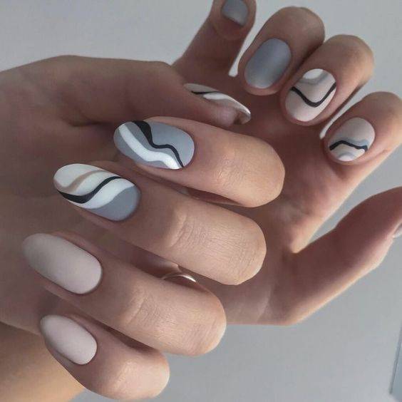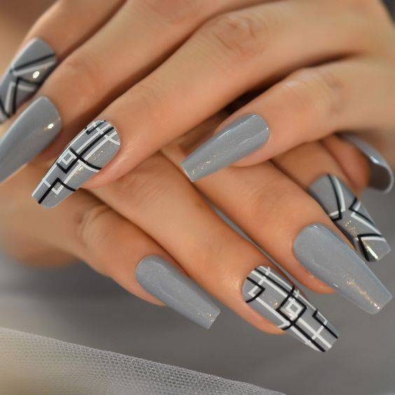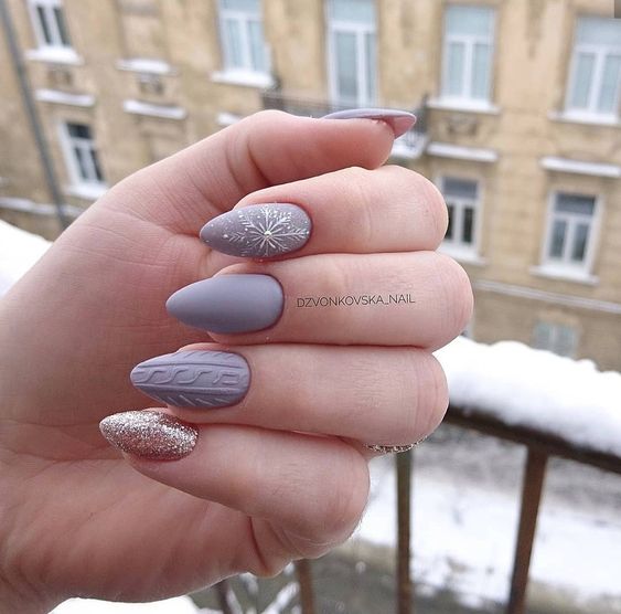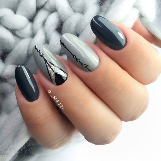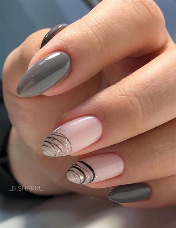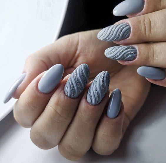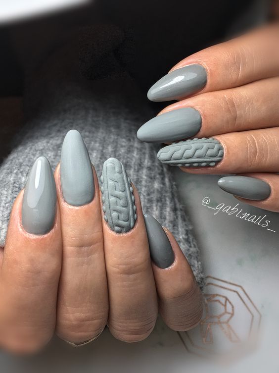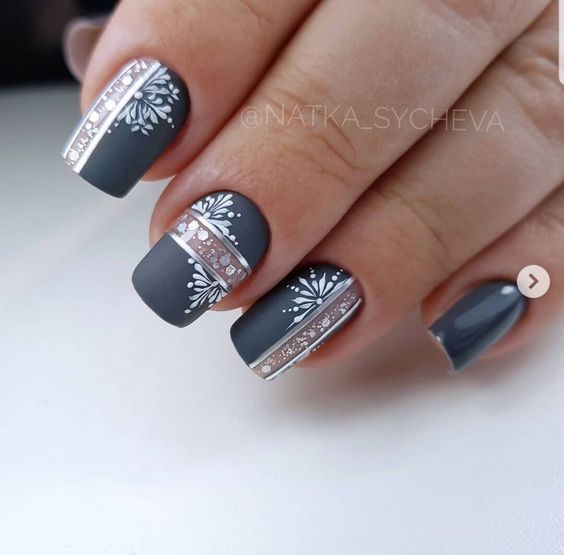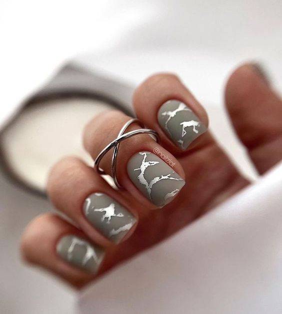 Варианты дизайнов ногтей в серых тонах 2023