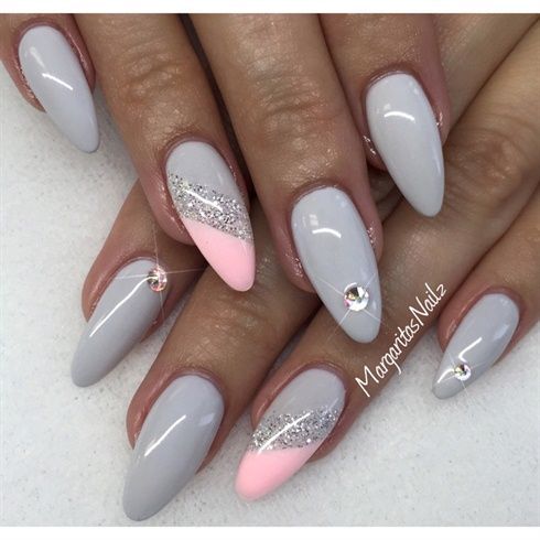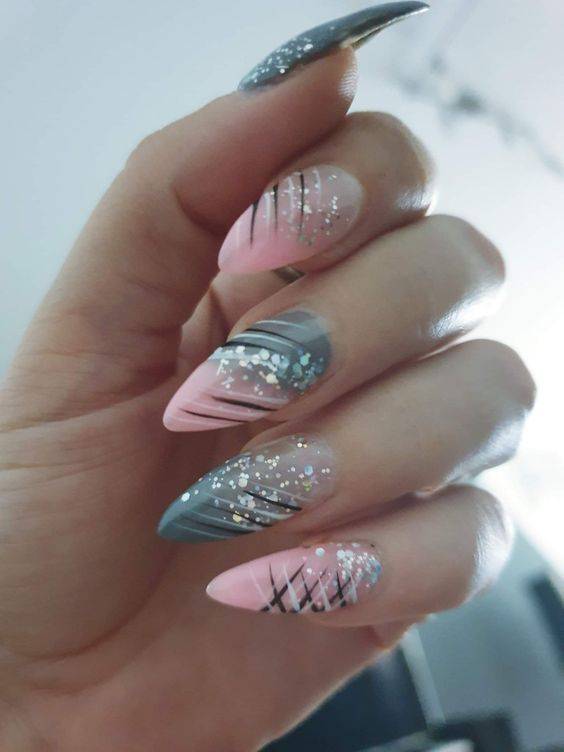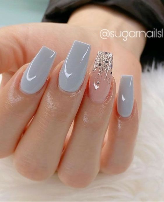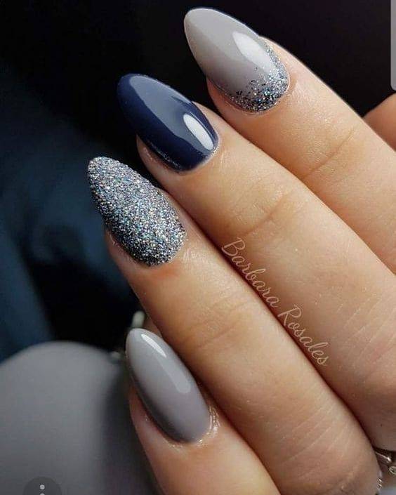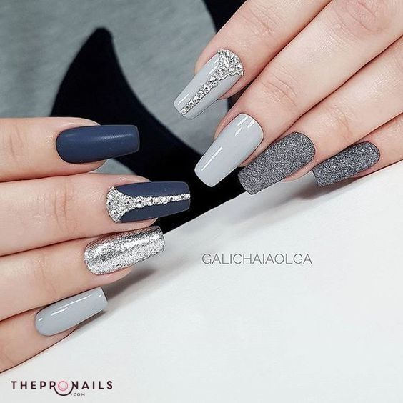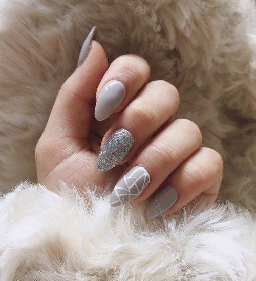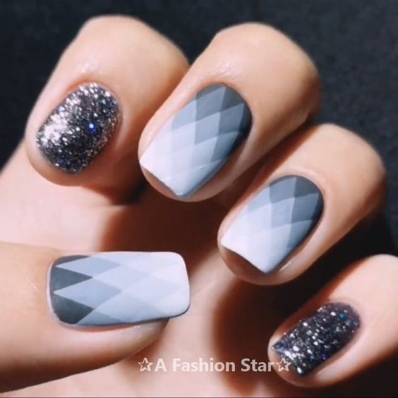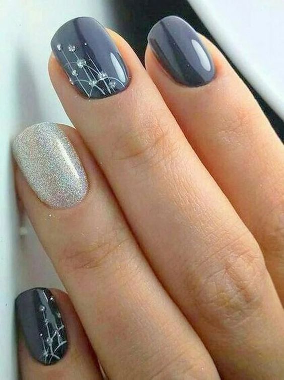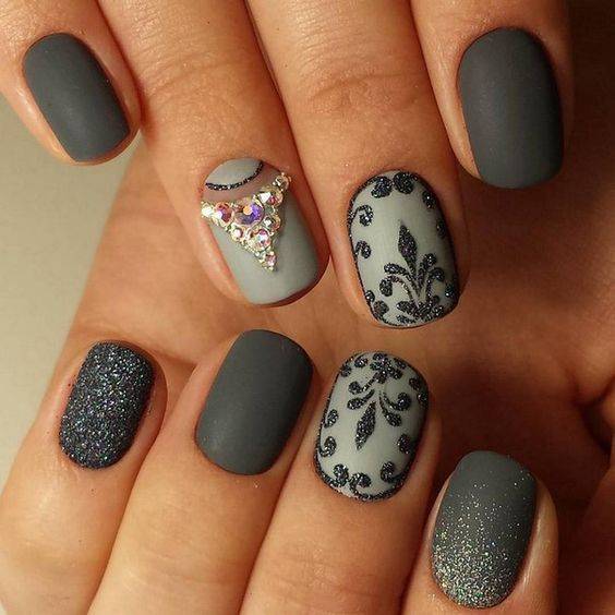 Серый маникюр с блестками
