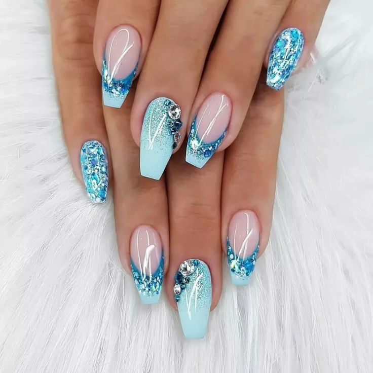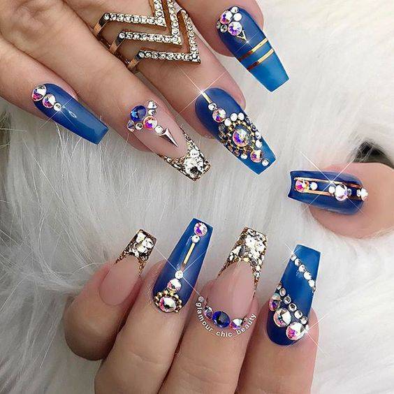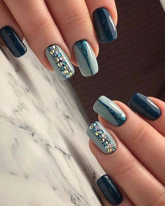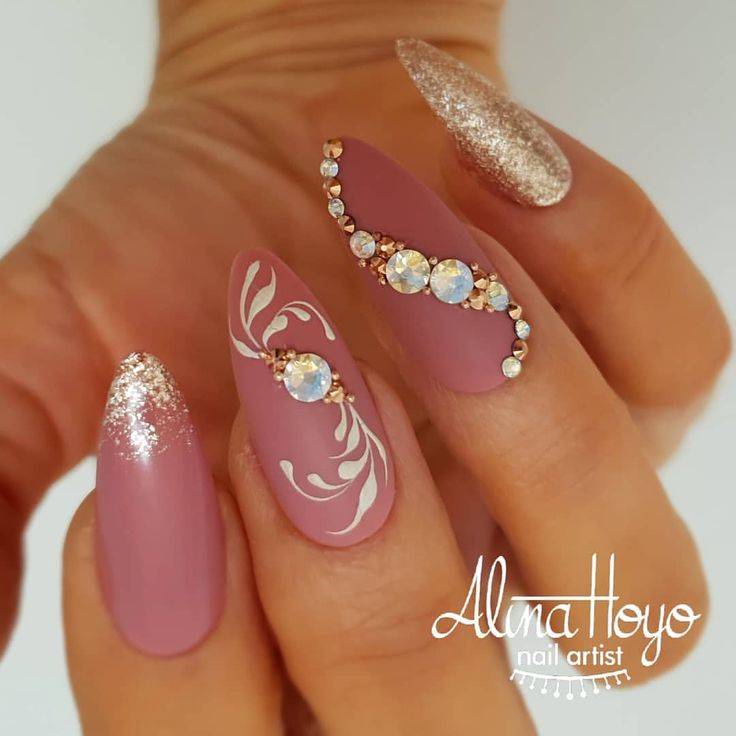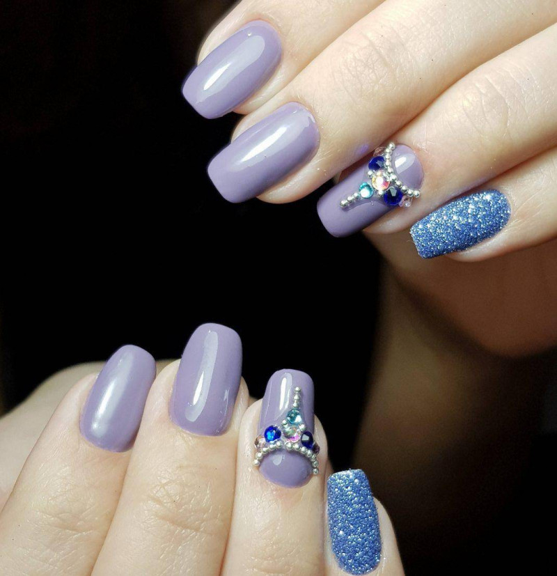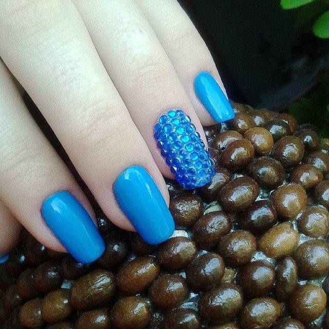 Оформление стразами и блестящим песком добавит шарма и лоска. Стоит взять на вооружение эту модную тенденцию.