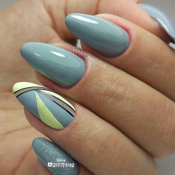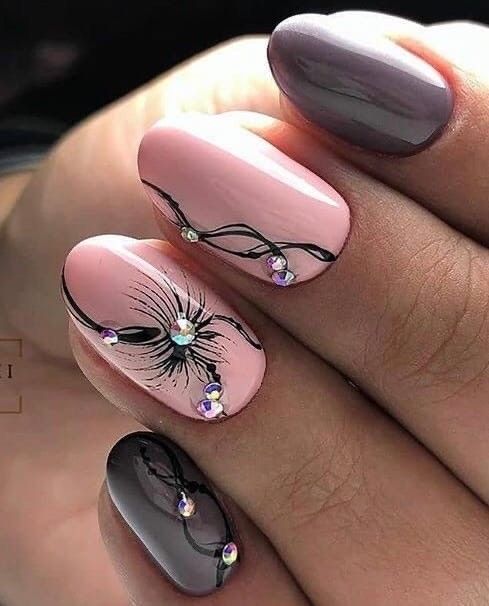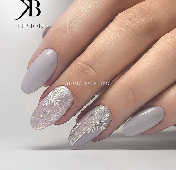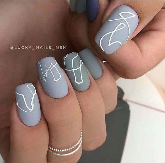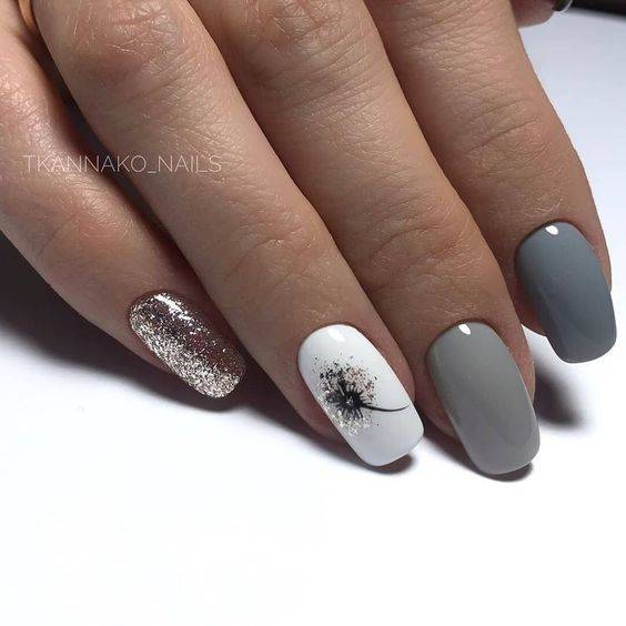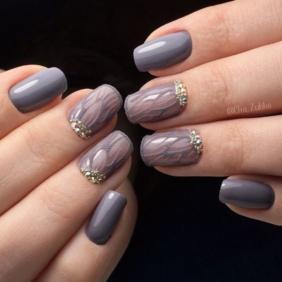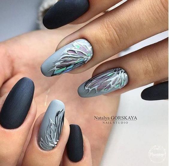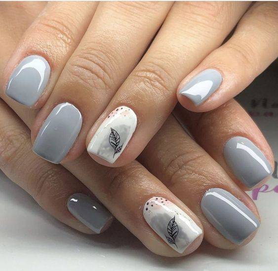 Рисунок на ногтях — словно завершающий штрих. Он создаёт настроение и подчёркивает основной цвет. Поскольку серый лак гармонично смотрится с разными оттенками, для рисунка можно выбрать любую тематику. Но пестроты лучше избегать.