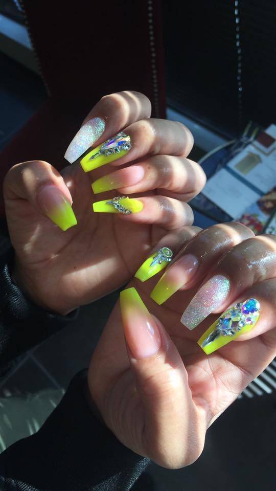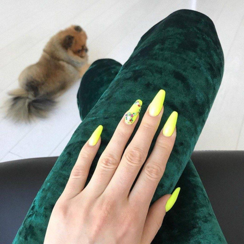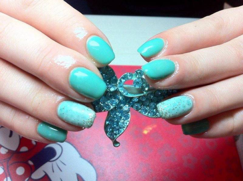 Хочешь быть на одной волне со своими кумирами? Тогда яркие цвета – твой путь к успеху! Освежить любой образ можно с помощью зеленых и синих нарощенных ногтей. Конечно, он не соответствует деловому стилю, но смотрится безумно интересно как на длинных, так и на коротких нарощенных ногтях.