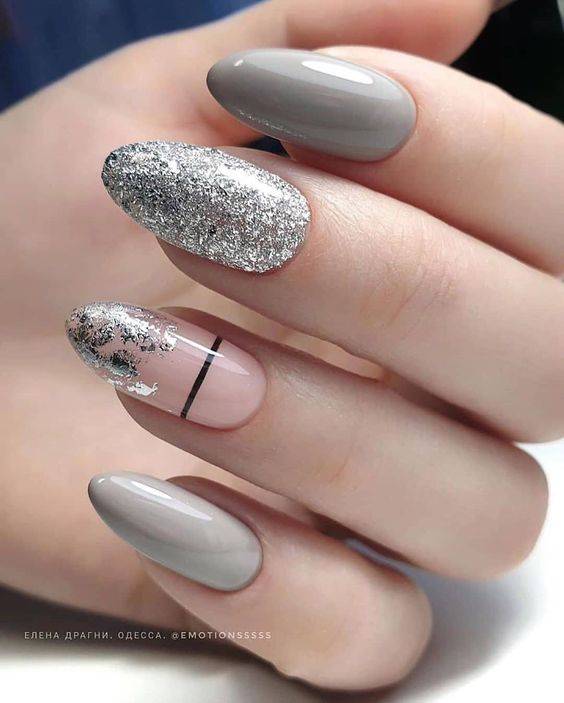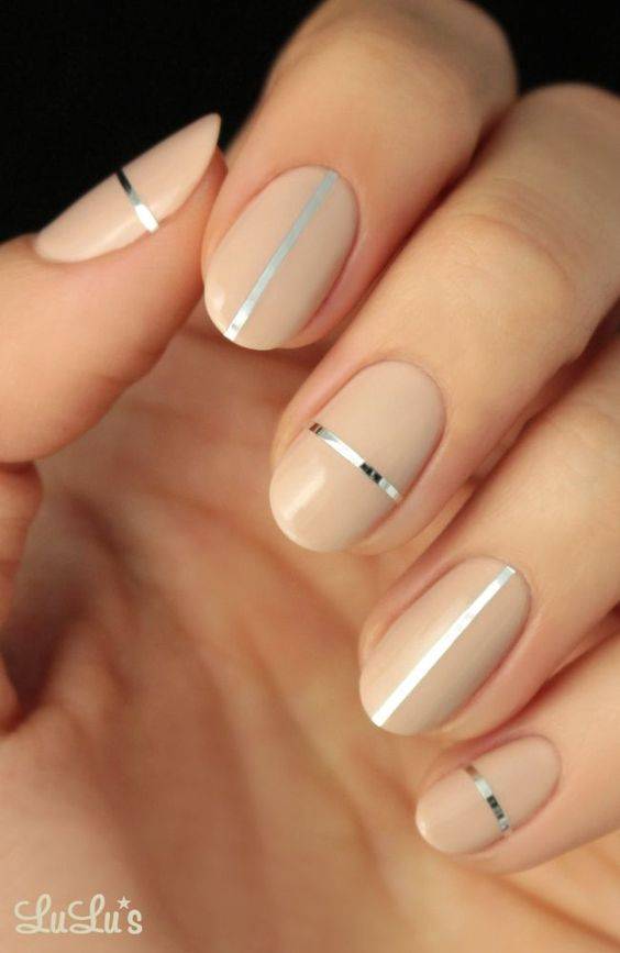 Правильное сочетание нюдовых оттенков и серебра. Популярнейшая идея маникюра.