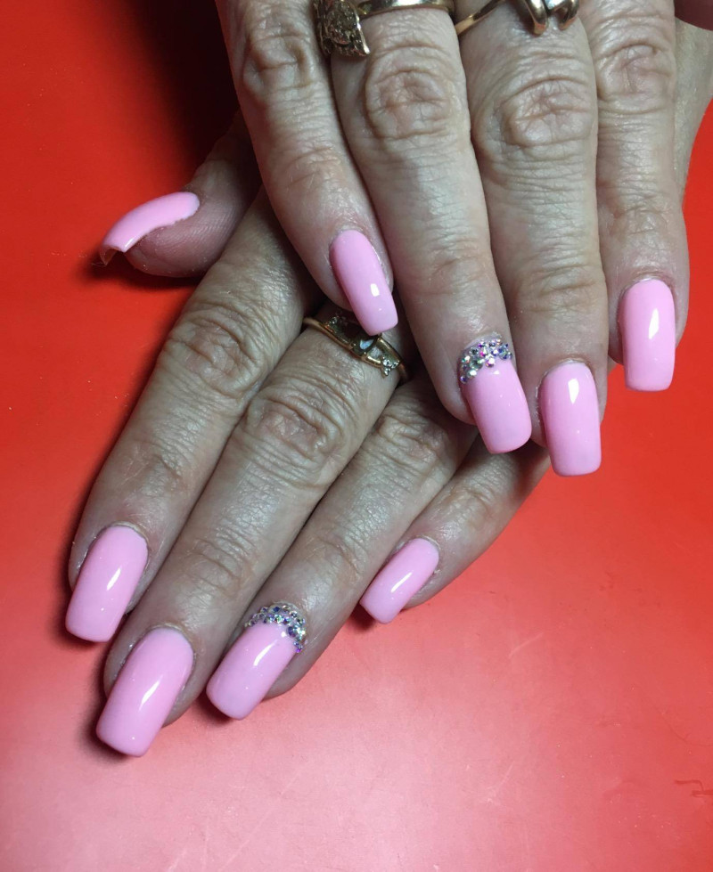 Полупрозрачное покрытие и стразы довольно заезженная тема, но по-прежнему пользуется спросом.