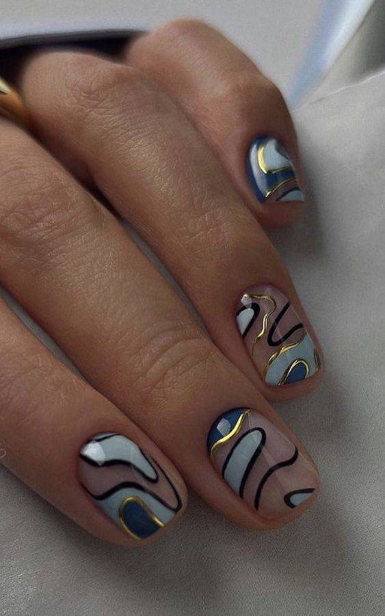 - Абстрактный. Идеальный способ нарисовать что-либо на ногтях, даже если мастер начинающий;