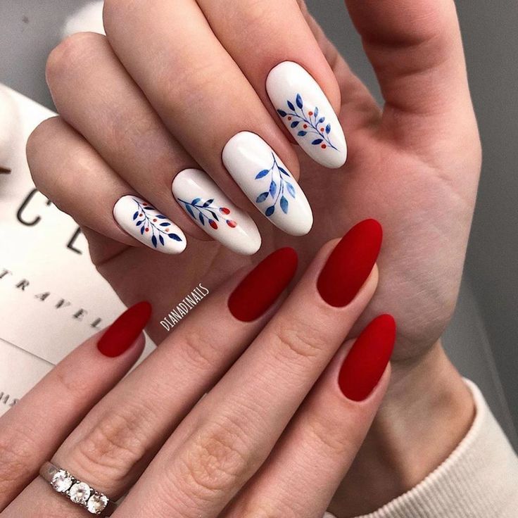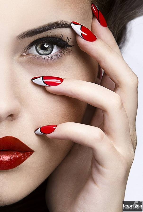 Вызов социуму наряду с женственностью и своеобразной помпезностью – вот главный стиль ногтей острой формы. Экспериментируйте с дизайном, отходите от правил и сочетайте несочетаемое. Не забывайте про красный оттенок и дополнительные контрастные цвета.