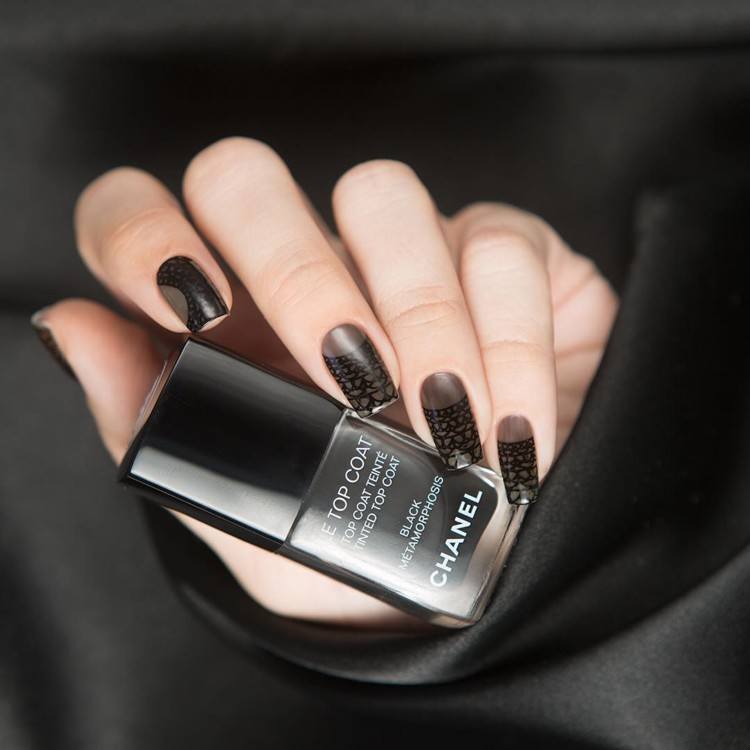 Использование негативного пространства, то есть, полностью свободного от цвета, покрытого только блестящим прозрачным лаком.