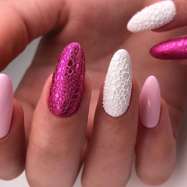 Оригинальный стиль маникюра, получивший название «пенный», позволяет придать покрытию необычный эффект. Для основы чаще всего используют светлые и нейтральные тона, но для вечернего образа тёмные оттенки лаков также подходят.