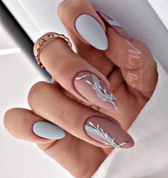 Дизайн ногтей 2023 по фен-шуй. Выделение безымянного ногтя цветом, оттенком, блестками или дизайном приглянулось многим модницам еще из предыдущих сезонов. Эффект матового покрытия смотрится необычайно стильно. Именно поэтому от него не отказались и в этом сезоне.