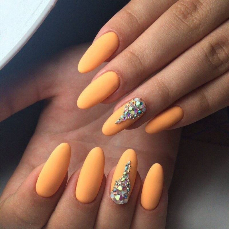 Особой популярностью обладает острая форма ногтя. Зачастую их наращивают, потому как ногтевым пластинам человека тяжело придать необходимую форму, в особенности если требуется некоторое удлинение. В новом 2022 году на острых формах будут отлично смотреться все яркие оттенки. Применение натурального цвета для создания образа будет характерной ошибкой нового сезона.