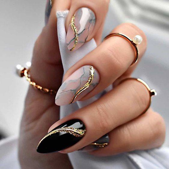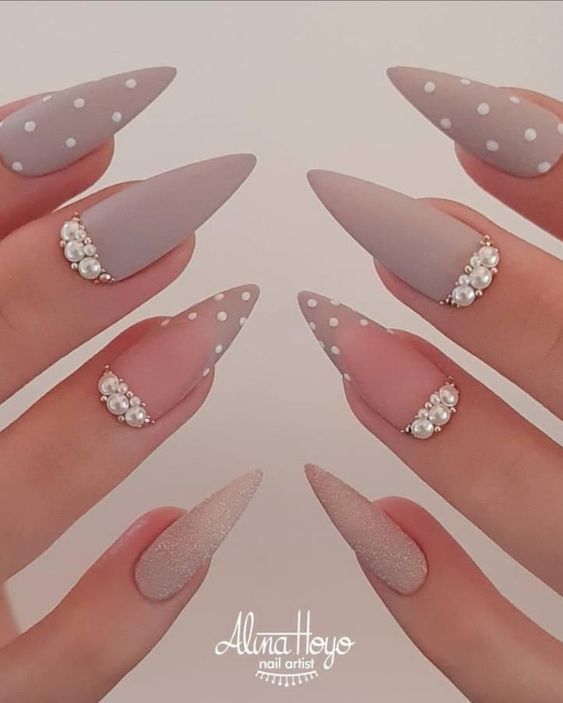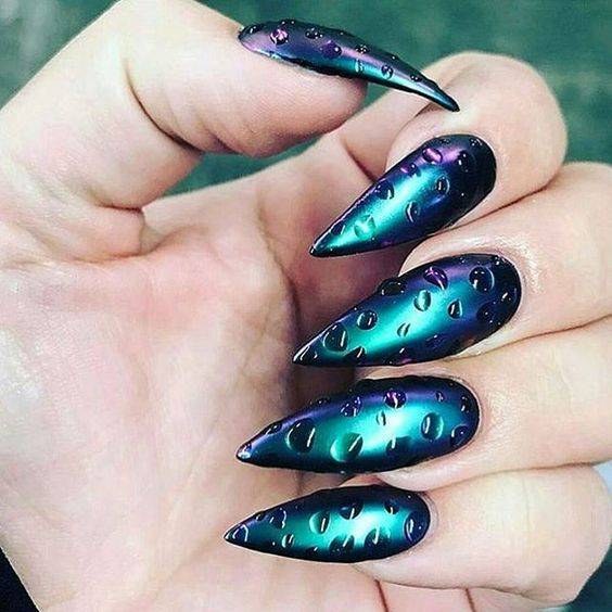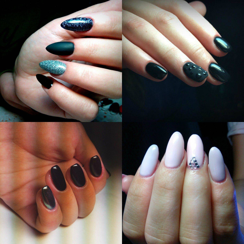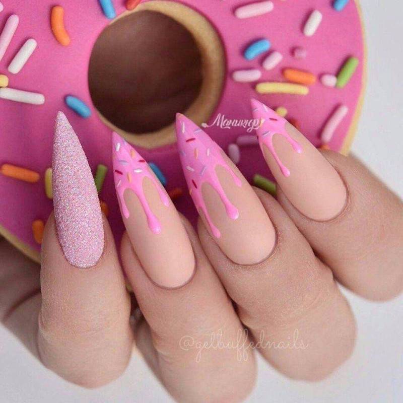 Используйте на острых ногтях самые различные техники оформления ногтевой пластины.