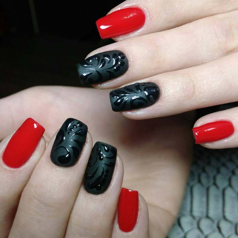 - Глянцевый или матовый. Первый сделает ноготок ярким и блестящим, второй усилит глубину цвета;