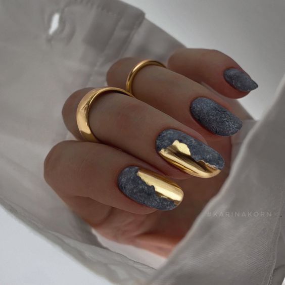Матовое покрытие в сочетании с золотом. Уже несколько сезонов эта идея не теряет своей привлекательности.