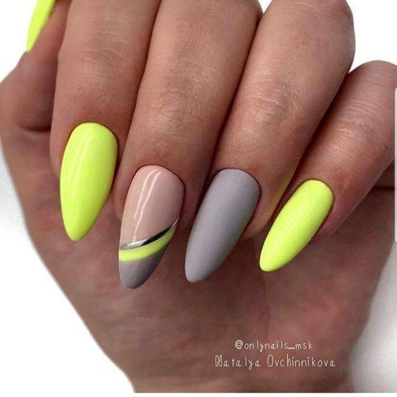 Не только летом актуальны желтые и оранжевые оттенки ногтевого покрытия, но и в холодный период, так как эти солнечные цвета способны поднимать настроение и не падать духом. А если учесть еще и то, что 2018 год – год Желтой Собаки, то «солнечные» цвета вообще становятся супермодными. Сюда же можно отнести и золотистые блестящие покрытия. Интересные цветовые комбинации ярких оттенков предлагают дизайнеры нейл-арта. Они идеально подойдут для нарощенных ногтей в 2018 году жизнерадостным и веселым личностям.