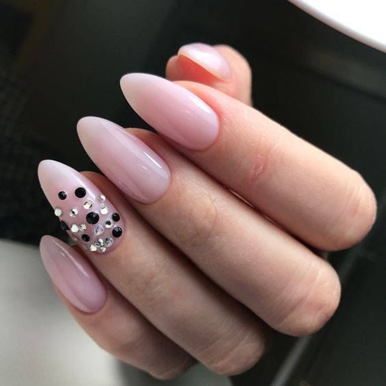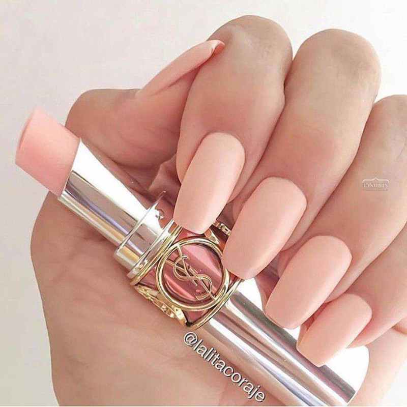 Маникюр с естественным цветом покрытия прочно закрепился как самый популярный среди девушек. Он идеально подходит как для повседневного образа, так и торжественного выхода. Нюдовый дизайн имеет множество вариантов и прекрасно сочетается с любой формой и длиной ногтей. Декором для трендового маникюра могут служить стразы, фольга, пайетки и блёстки.