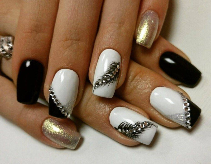 Для целеустремленных женщин самым оптимальным вариантом как для работы, так и для отдыха будет маникюр на нарощенных ногтях в белом или черном варианте. Да-да! Именно в черном! Черный цвет уже давно не считается в нейл-арте траурным и с помощью него создаются шикарные образы. Ну а белый цвет покрытия при наращивании ногтей – для утонченных и романтических натур.