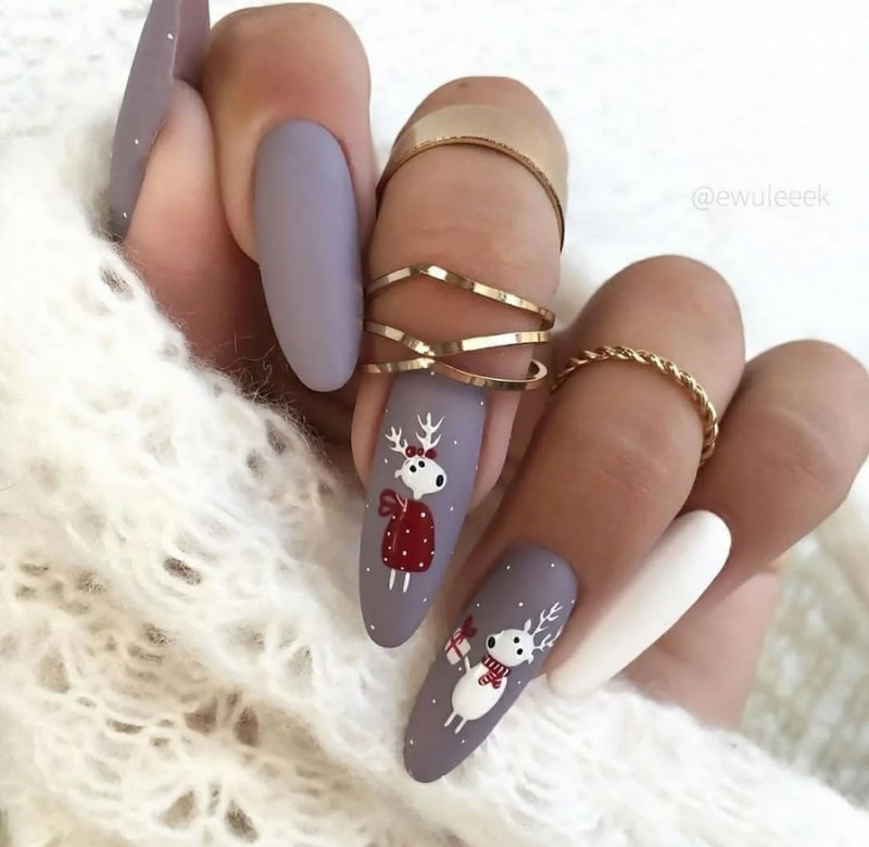 Очень милые двуногие олени как демонстрация тренда на стилизованную роспись ногтей.
