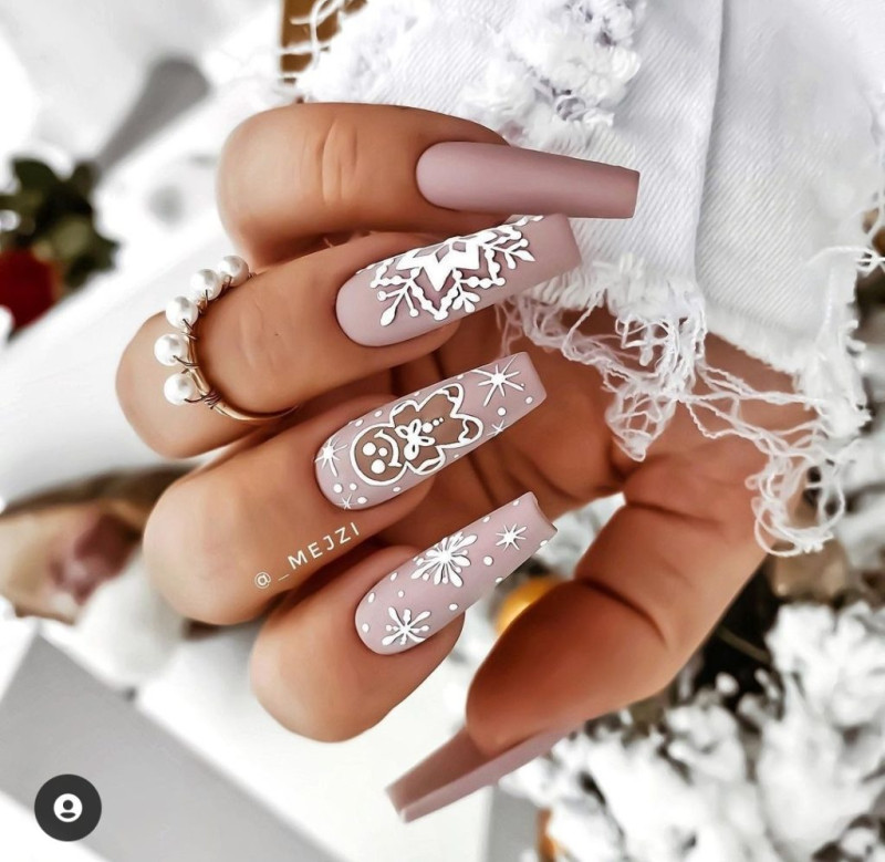 Зимний дизайн ногтей, который можно носить все холодное время года. Четкие линии формы и милая печенька — сочетание несочетаемого как способ самовыражения.
