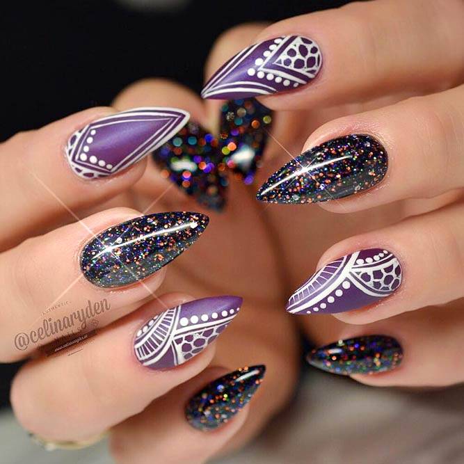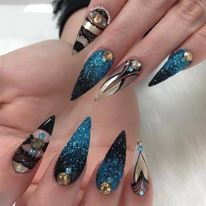- В дизайне можно использовать глиттер, кристаллические камни, фольгу;