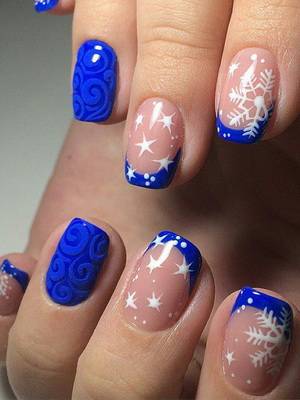 А дополнение снежинками или узорами на нескольких пальцах оживит и разнообразит такой уникальный маникюр.