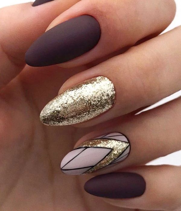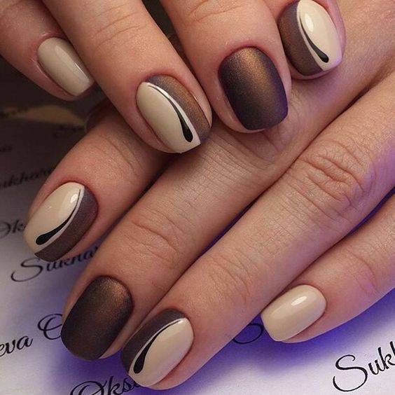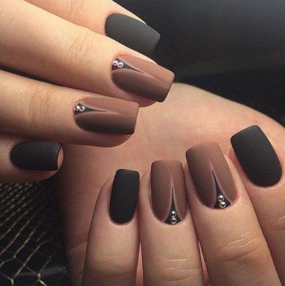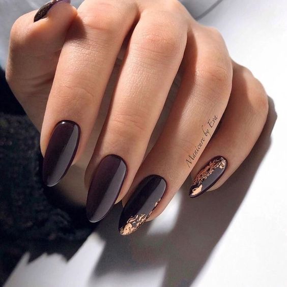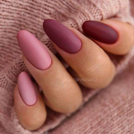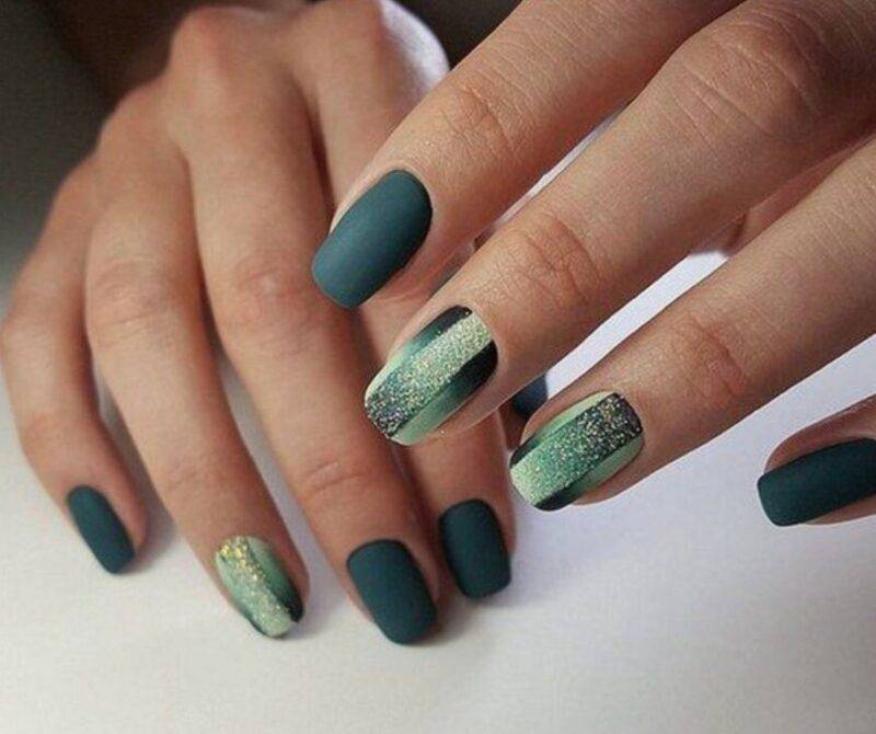 Они могут быть как глянцевые, так и матовые, как будто припылённые. Благородно будут смотреться тёмные оттенки с микро блёстками.
