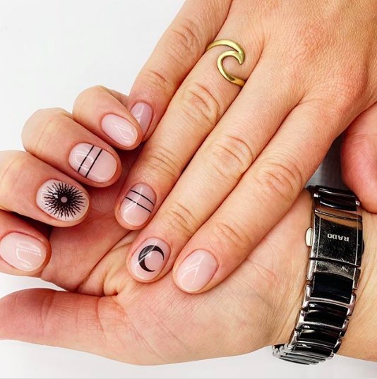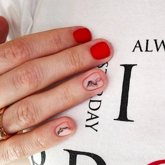 Такие рисунки легко сделать на любой длине ногтей, подобрав подходящие варианты.