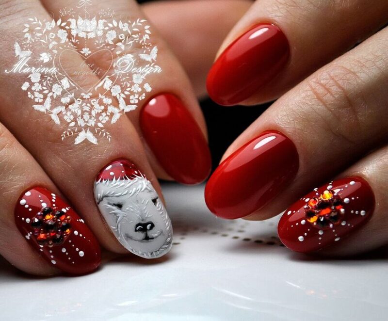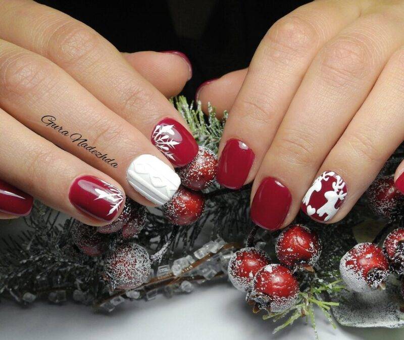 Новогодний маникюр с рисунком оленя.