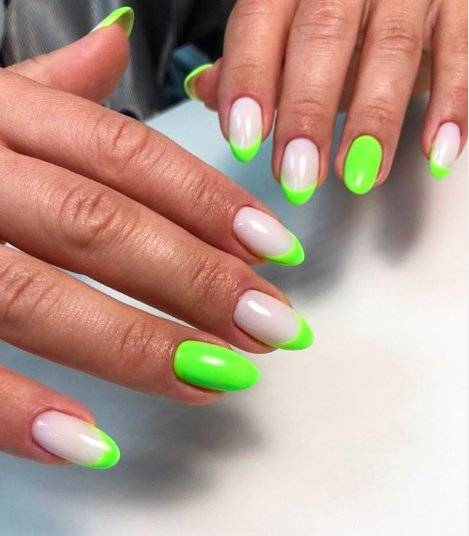 Это одна из разновидностей френча, но отличие в том, что выделяется не кончик ногтя, а лунка у основания.