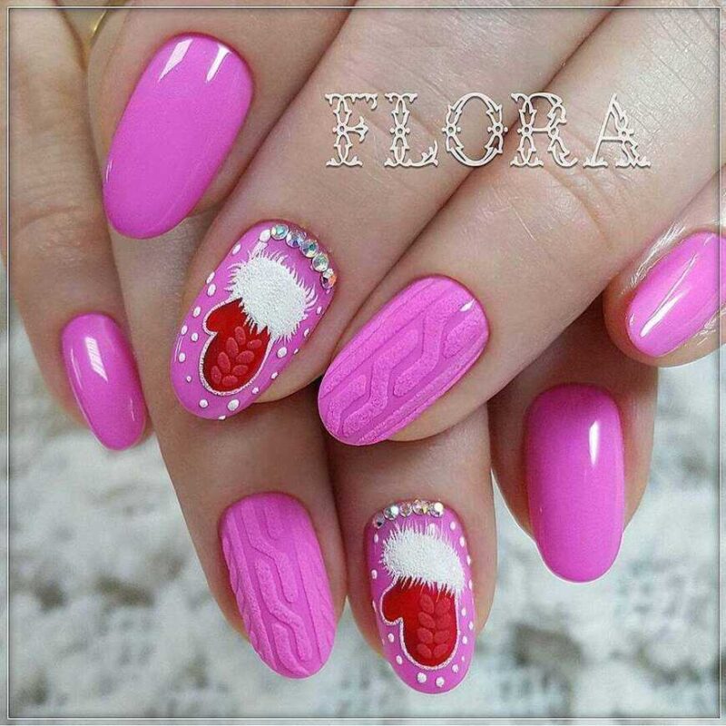 Чем только не украшают ноготки под Новый год! Тематические рисунки по типу елочек, снеговиков и снежинок, обильно усеянные блесточками и стразами, сверкают ярче, чем праздничная елка.