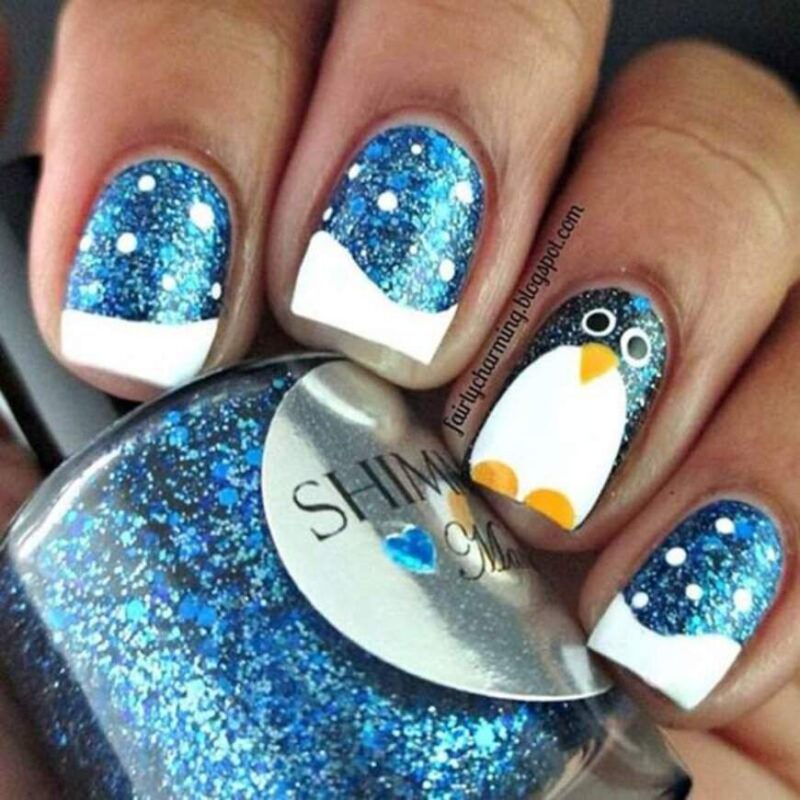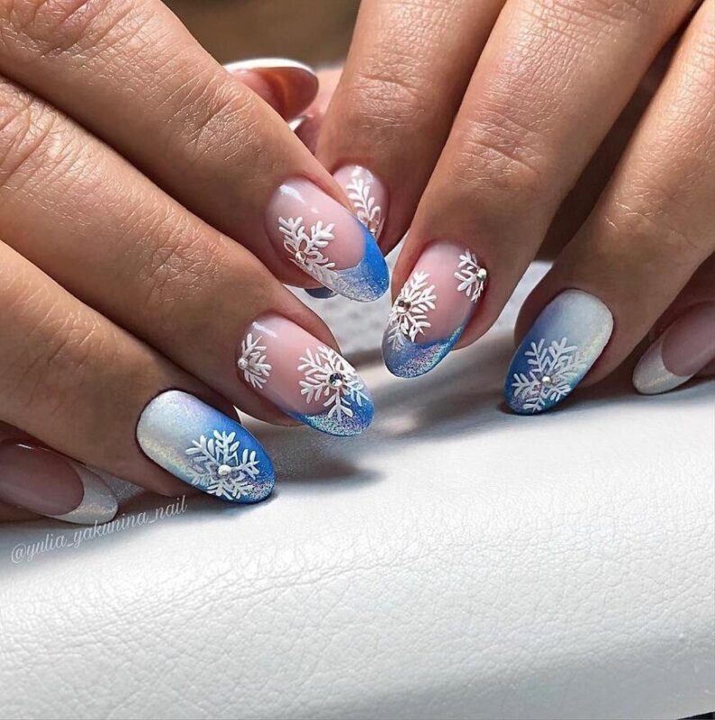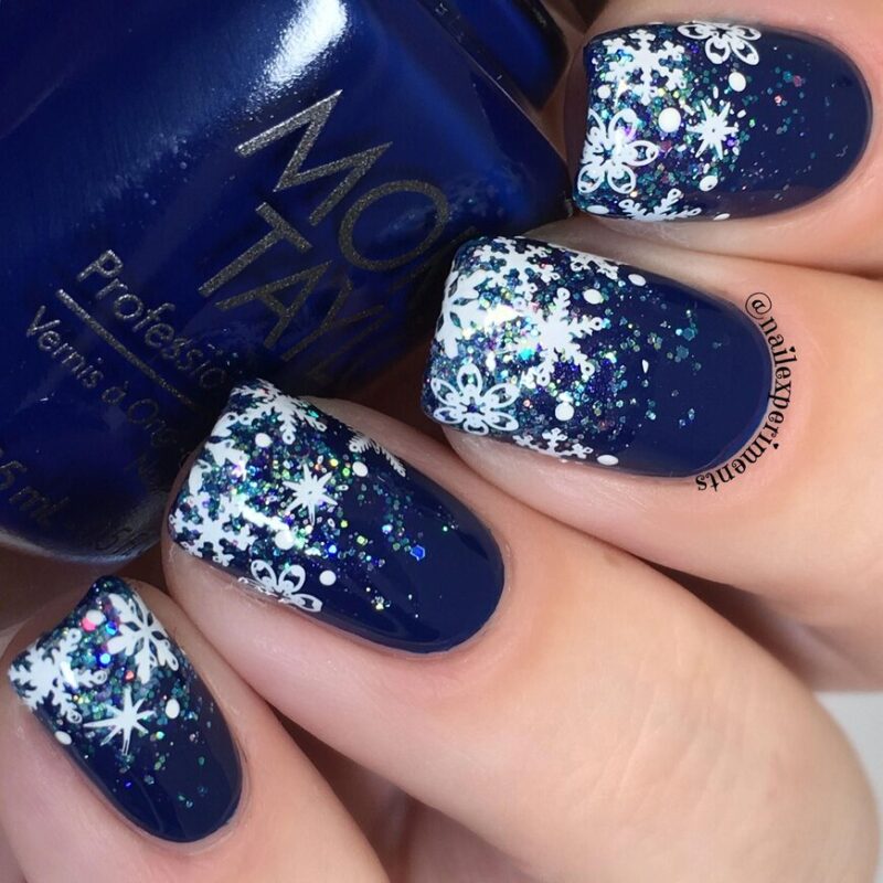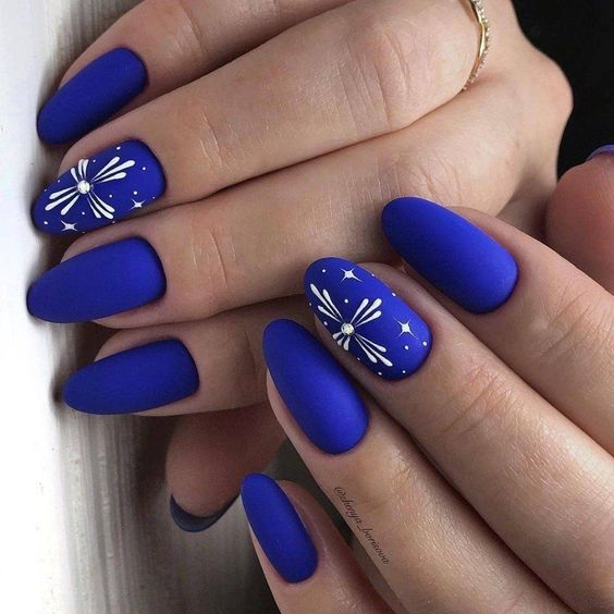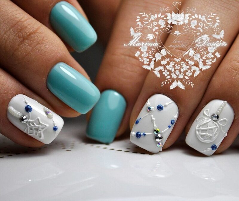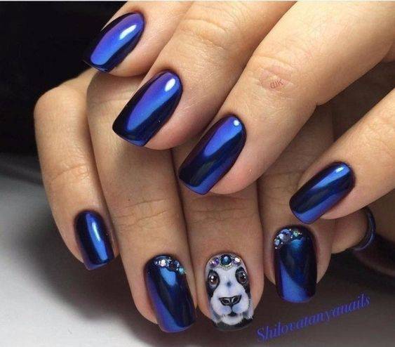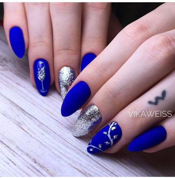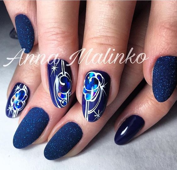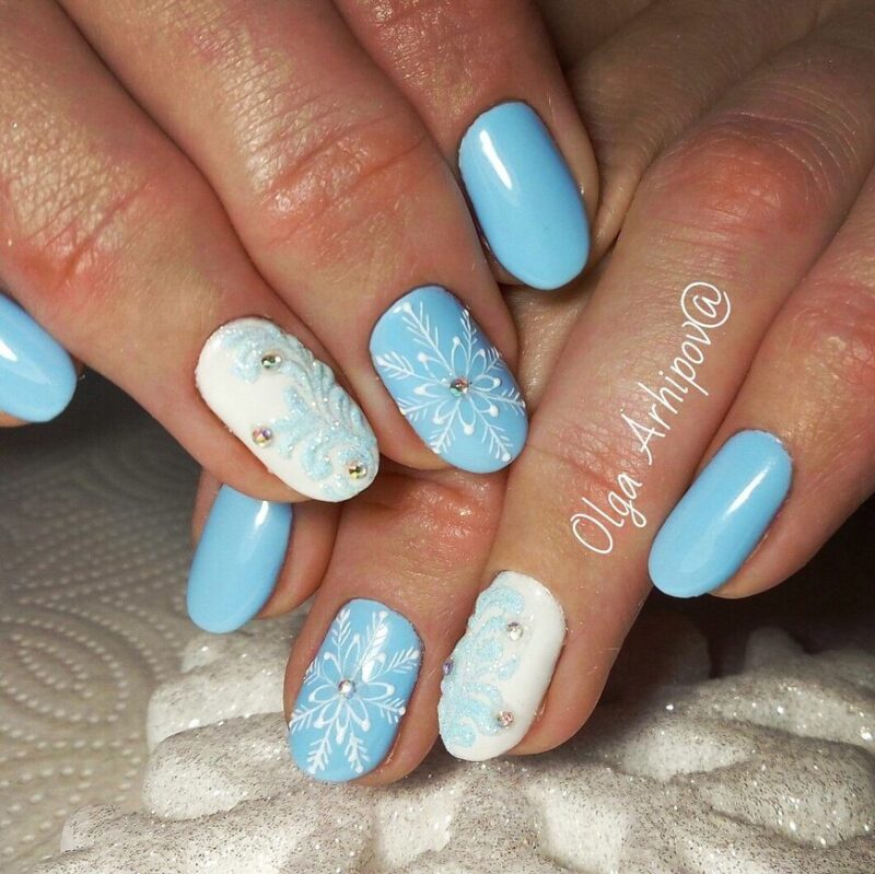 В Новый год не обойтись без синего маникюра, при этом можно выбирать как нежные оттенки, так и более глубокие