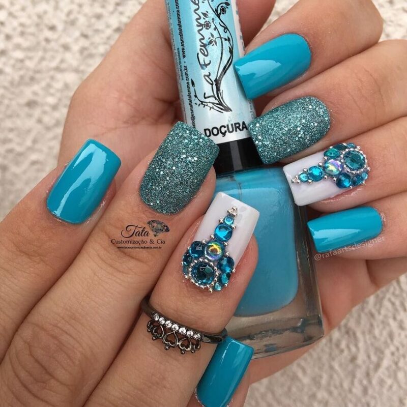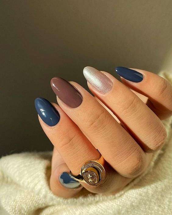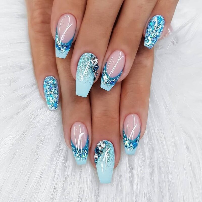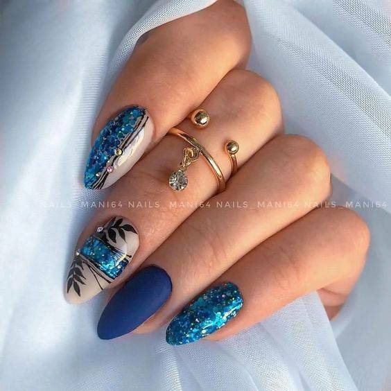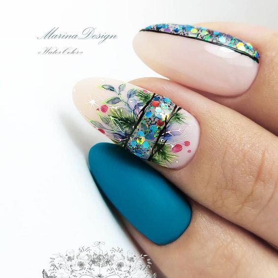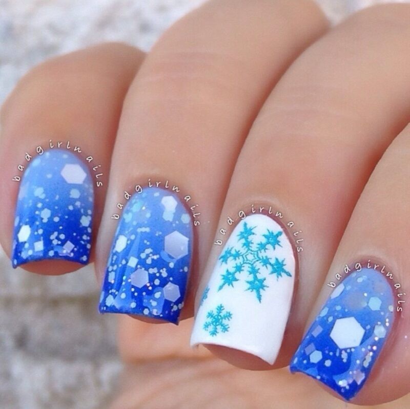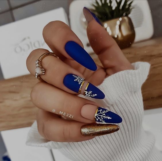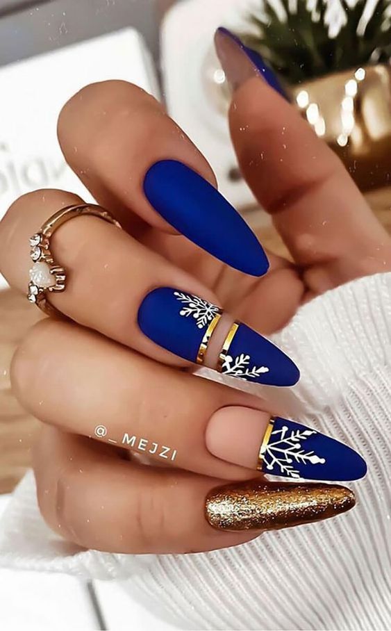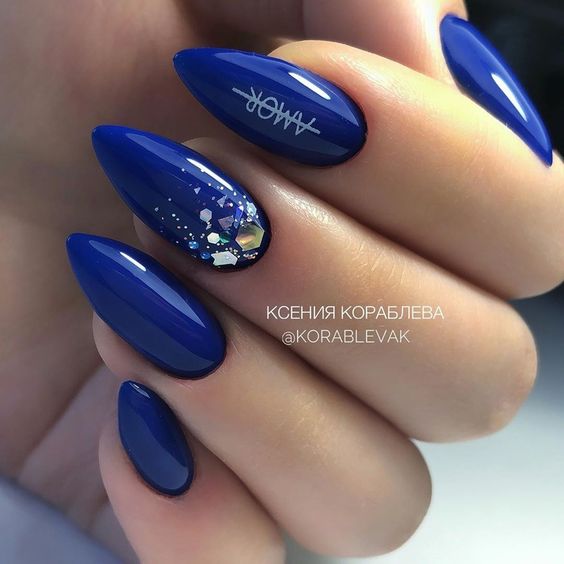 В Новый год не обойтись без синего маникюра, при этом можно выбирать как нежные оттенки, так и более глубокие